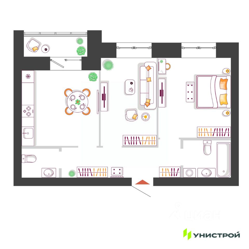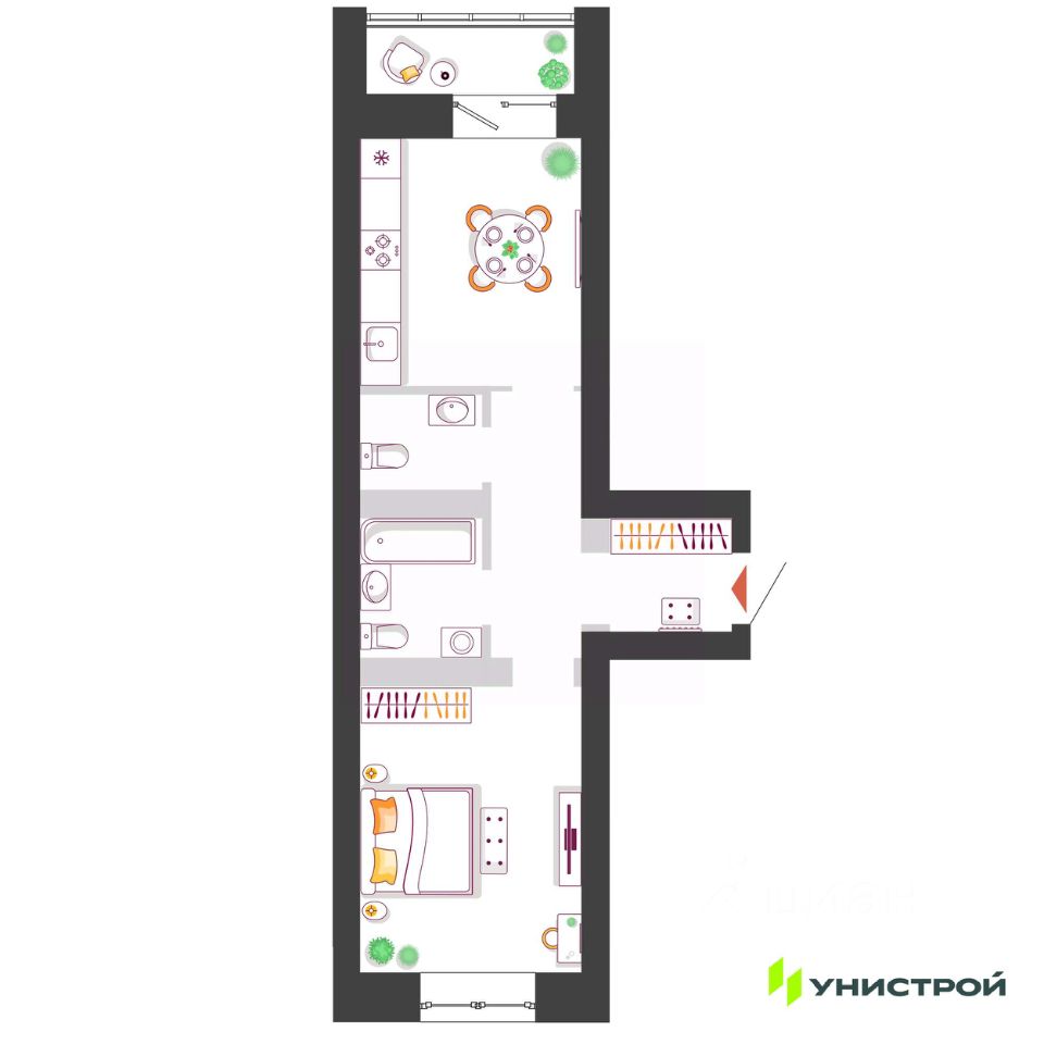 Продажа квартир в ЖК ''Уникум на Ленинском'' в Тольятти от застройщика ''Унистрой''. Комфорт-класс в центре города. Свободные планировки. Компания ''Унистрой'' предлагает приобрести квартиру в современном жилом комплексе комфорт-класса ''Уникум на Ленинском'', расположенном в историческом и деловом центре Тольятти. Проект реализуется по принципу ''дом-бенефит'', где каждая деталь — от локации до технологий — создана для повышения качества жизни его жителей. Расположение и инфраструктура ЖК находится на пересечении Ленинского проспекта и Нового проезда — одной из самых престижных локаций города. В пешей доступности сосредоточена вся необходимая инфраструктура: Образование: лицей 51, несколько детских садов. Медицина: многопрофильный медицинский центр. Торговля и отдых: торговый центр ''Русь на Волге'', более 10 ресторанов, кафе и кофейен. Рекреация: три обновленных парка и скверы в шаговой доступности, до набережной Волги — 5-10 минут на автомобиле. Благоустройство и безопасность территории Закрытый двор: территория комплекса огорожена и находится под круглосуточным видеонаблюдением, доступ ограничен. Двор-парк: многоуровневое озеленение, прогулочные аллеи, детские игровые площадки для разных возрастов. Приватность: в доме всего 101 квартира, что обеспечивает камерную и спокойную атмосферу. Технологии и инженерные решения Комплекс оснащен современными инженерными системами для комфорта и экономии: Контроль доступа: электронные замки на входных группах с возможностью открытия по коду, ключу или отпечатку пальца. Управление: единый сервисный центр и мобильное приложение для заявок и контроля услуг. Коммунальный учет: автоматизированная система сбора показаний приборов учета (АСКУЭ). Экологические решения: централизованная подача очищенной питьевой воды. Паркинг: наземная парковка, оборудованная станцией для зарядки электромобилей. Планировки и отделка квартир В продаже представлен широкий выбор квартир различной площади и конфигурации: Площадь: от 38,4 кв. м до 108,37 кв. м. Форматы: классические планировки, квартиры с террасами, просторные кухни-гостиные, варианты со свободной планировкой и мастер-спальнями. Отделка: качественная предчистовая отделка от застройщика, позволяющая реализовать любой дизайн-проект. Высота потолков — 2,7 м. Особенности: панорамное остекление, увеличенные оконные проемы. Дополнительно: индивидуальные кладовые помещения на технических этажах и просторная колясочная на первом этаже. Архитектура и дизайн общественных зон Архитектурная концепция выполнена в стилистике постсоветского модернизма, что делает фасад узнаваемым. Общественные зоны продуманы до мелочей: Дизайнерские лобби: с зонами ожидания, выполненными в натуральных оттенках. Доступная среда: бесступенчатые входные группы и широкие коридоры. О застройщике Застройщик — компания ''Унистрой'', федеральный девелопер с опытом реализации проектов в Тольятти (известен по жилому комплексу ''Южный Бульвар''). Прямые договоры (ДДУ) зарегистрированы в соответствии с 214-ФЗ. Услови