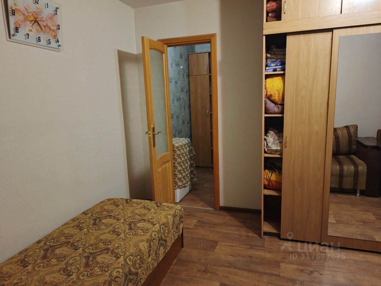 Есть 4- е отдельных спальных места: две 1- спальные кровати, одна 2-х спальная, 2-х спальный диван, шкафы, кухонный гарнитур, стол, стулья, прикроватная тумбочка.