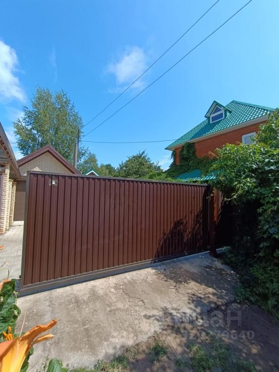 Участок ровный. На участке есть баня и подсобное помещение под инвентарь. Парковочное место выложено плиткой. Откатные ворота на два дома.