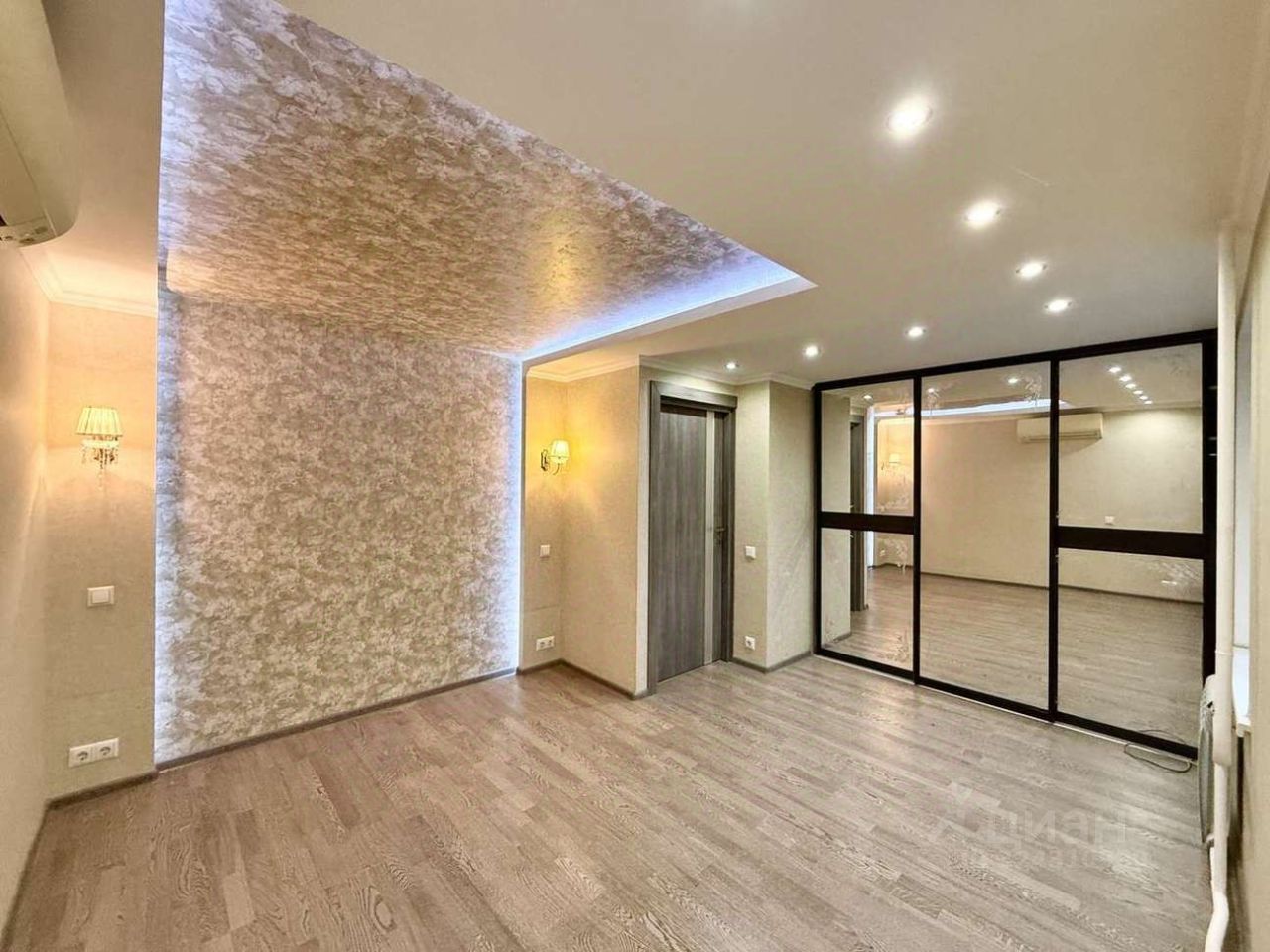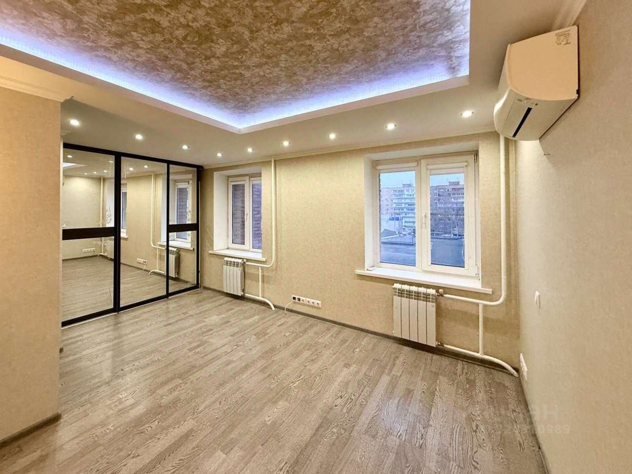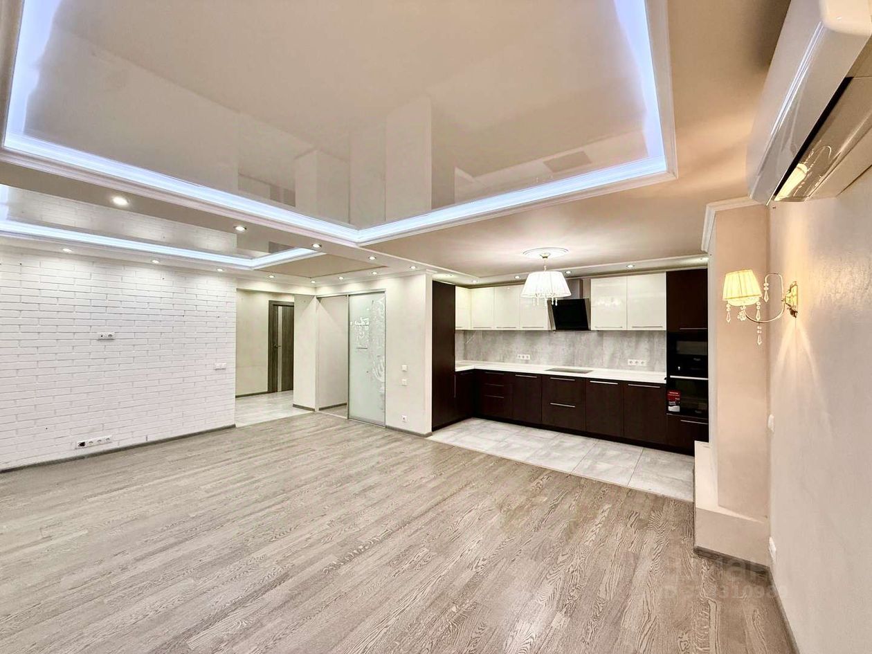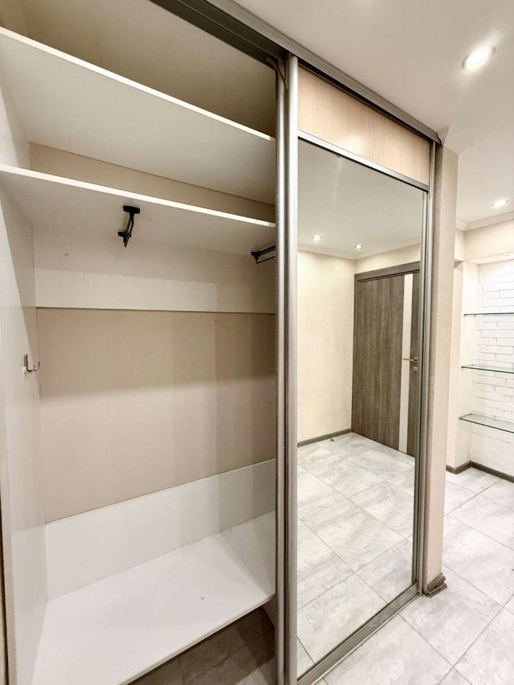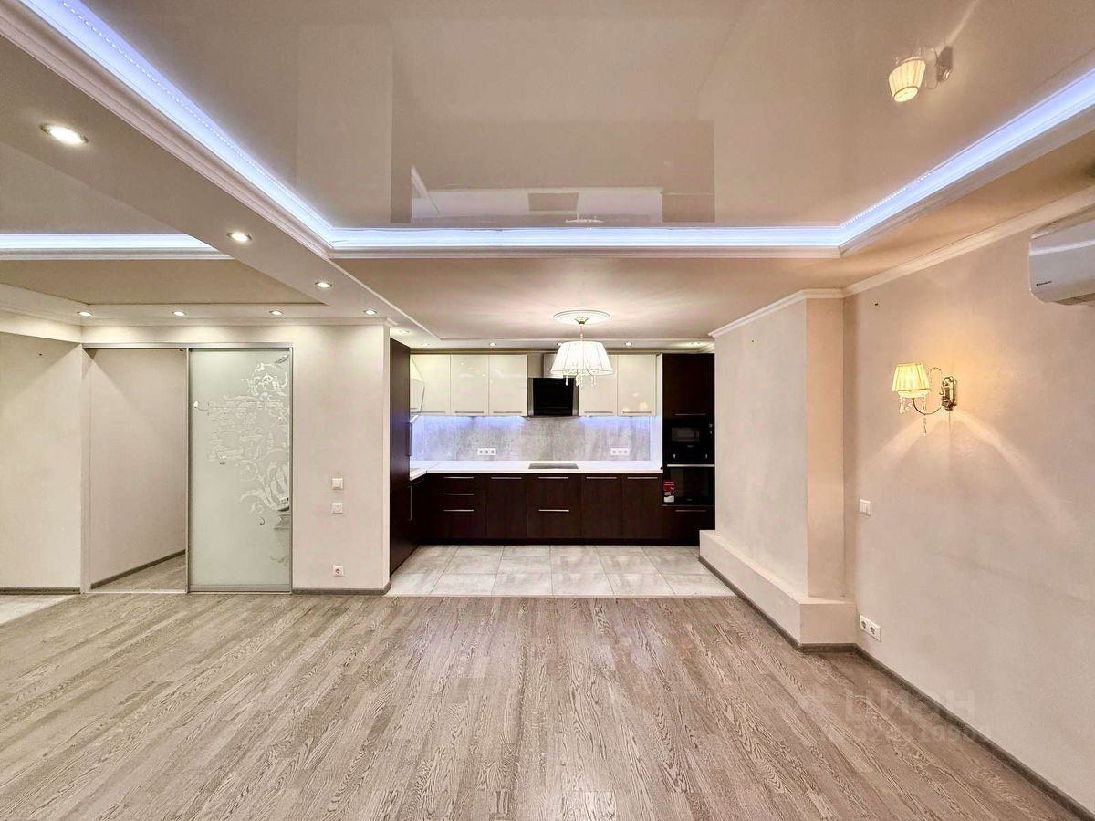 Просторная кухня-гостиная с подсветкой укомплектована современным гарнитуром со встроенной качественной техникой. Мощная сплит-система Delonghi в спальне и гостиной — 2 работающих кондиционера. Спальня имеет два окна, выходящих на южную сторону света, спокойное цветовое решение, оригинальное световое решение потолка и прикроватной зоны. Обратите особое внимание на вместительные встроенные шкафы в прихожей и спальне, а также на большую гардеробную — они раз и навсегда решат вашу проблему с хранением вещей — все будет в полном порядке.