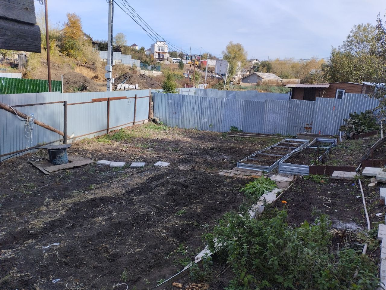 участок на склоне, освоен, огорожен забором, вода и свет сезонное, рядом остановка общественного транспорта магазины