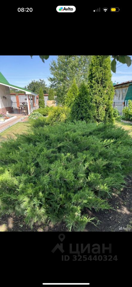 Участок 6 сот, ухоженный, по забору высокие туи. Две теплицы, газон, малина, абрикос, ежевика.