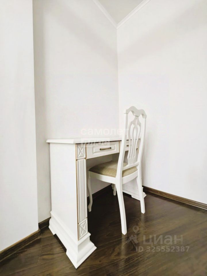 * Район: 14-й квартал, Тольятти. * Планировка: Улучшенная (''макаровская''), с высокими потолками и просторными комнатами. Все комнаты изолированы. Есть два санузла. * Площадь комнат: Гостиная — 27 м², спальни — 20 м² и 18 м², есть отдельный кабинет. Установлен тёплый пол. * Кухня: Просторная, 15 м², полностью укомплектована кухонным гарнитуром и современной техникой, включая посудомоечную машину и посуду. * Лоджия: Большая, утеплённая. Идеальное место для отдыха с видом на зелень. * Мебель и техника: Вся необходимая мебель и бытовая техника присутствуют (стиральная машина, посудомоечная машина и т.д.).