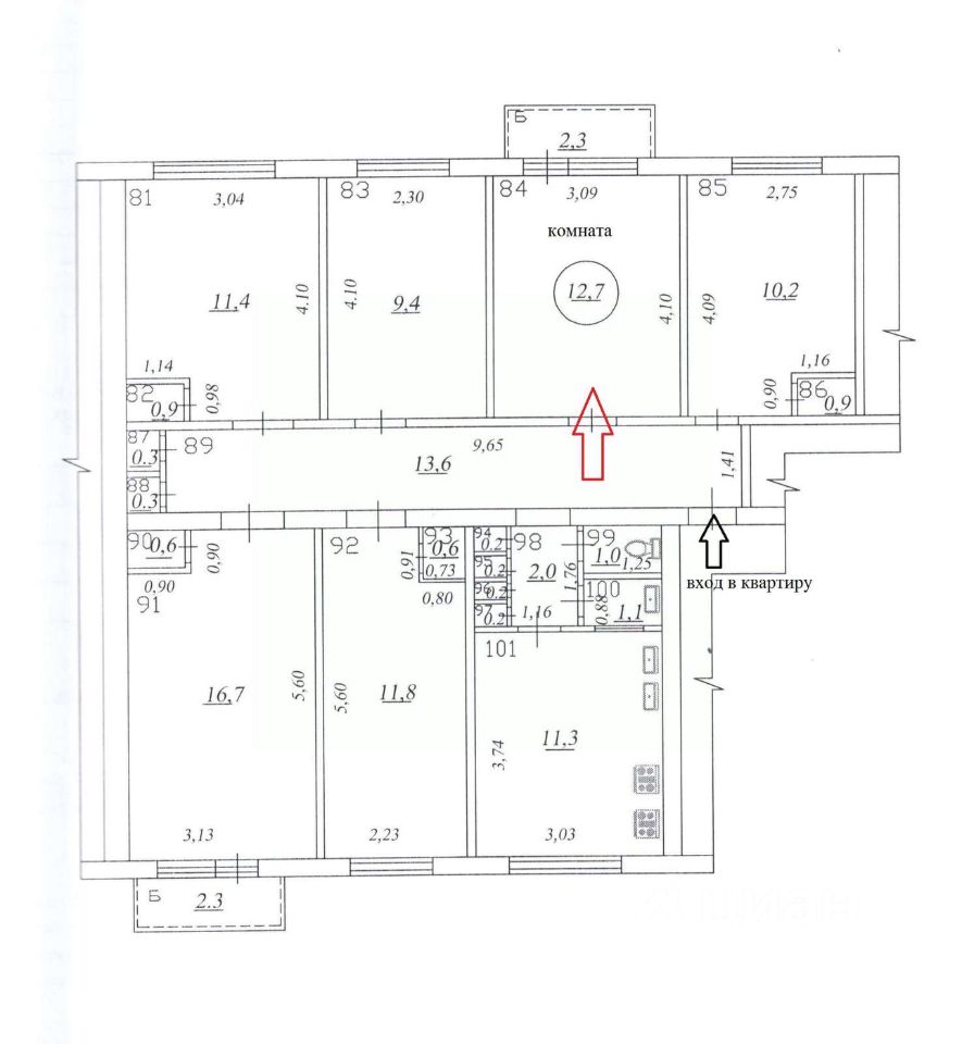 О квартире и соседях: Комната находится в 5-комнатной квартире, обшей площадью 105,6 кв.м., площадь кухни - 11,3 кв.м.,(места хватит всем), с/у - раздельный, есть кладовые помещения. Соседи - женщина с двумя детьми. Местра общего пользования требуют ремонта.
