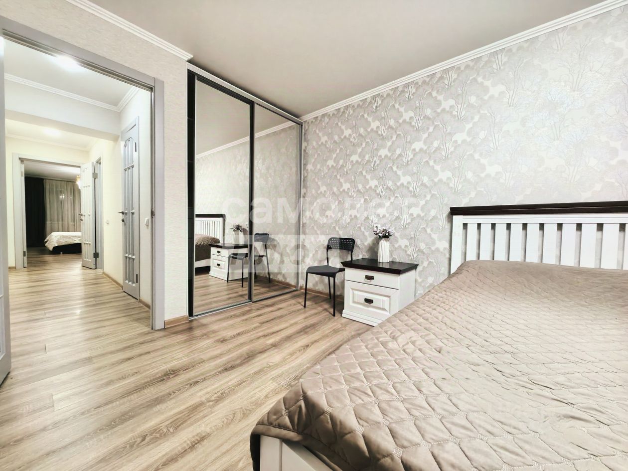 Эта просторная 3х комнатная квартира полностью укомплектована новой, дорогой мебелью и техникой. Квартира состоит из: - 3х комнат, 2 спальни, в каждой стоит большая двуспальная кровать. Одна спальня с большой панорамной лоджией и качелей, с видом на лес, - кухня оборудована кухонным гарнитуром и всей необходимой техникой, включая посудомоечную машину и посуду.