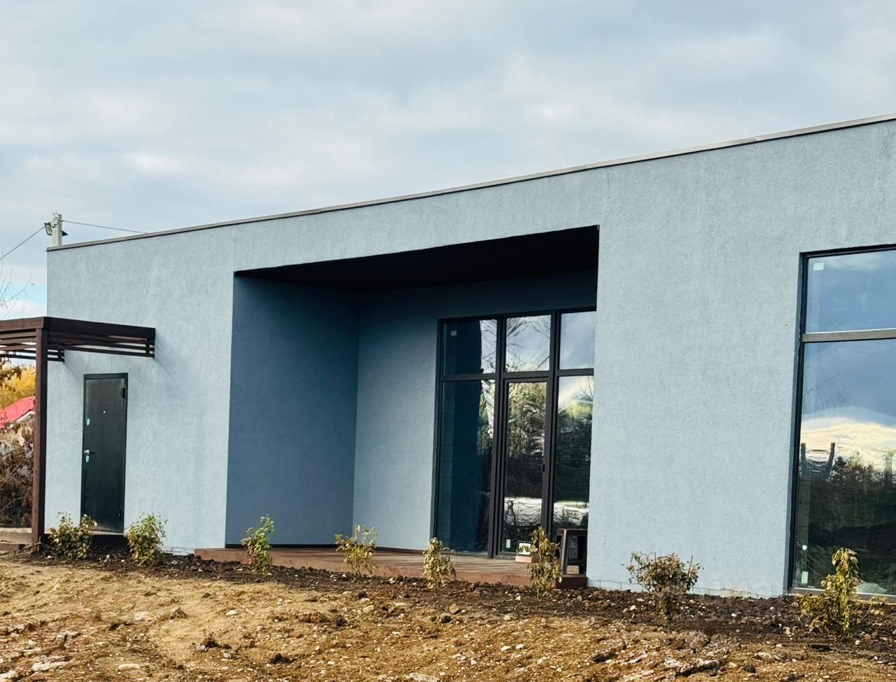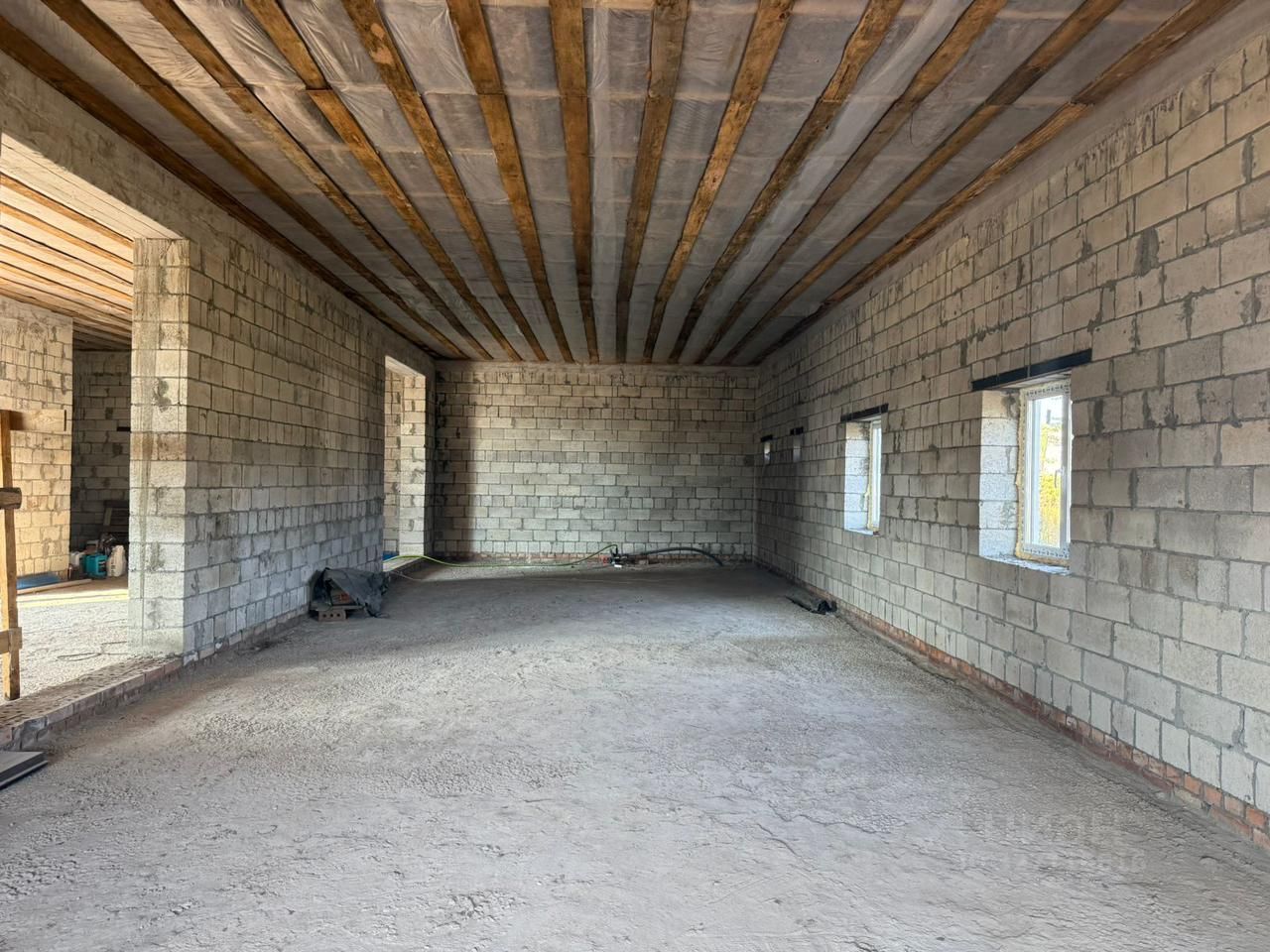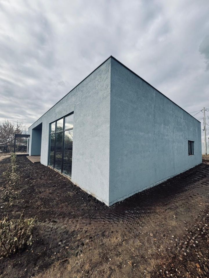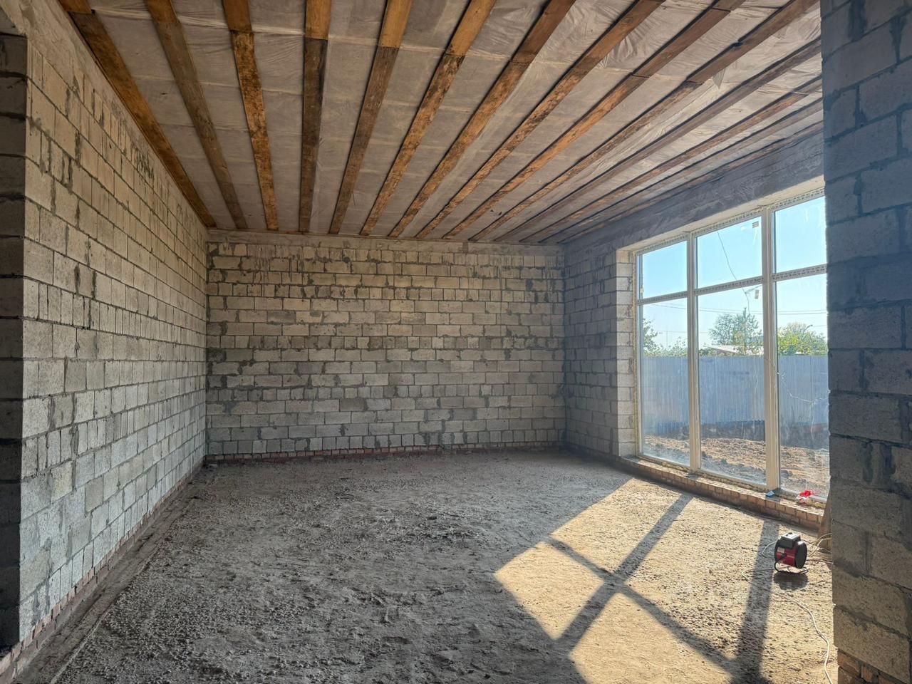 Строили дом из керамзита блока, 15 киловатт электроэнергии 380 вольт, крыша из дерева-плоская, из гостиный прекрасный вид в панорамные окна 4 метра и 3 метра, все коммуникации заведены в дом, газ проходит по границе.