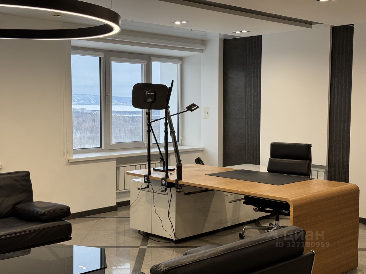 Стол и диваны кабинета топ менеджера-дизайнерские, от именитых европейских брендов.