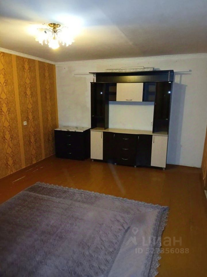 Комната 1: горка с секциями для телевизора, комод, диван.