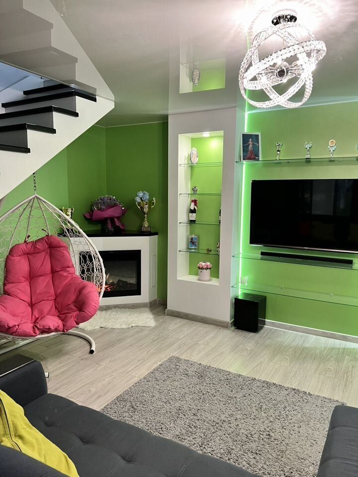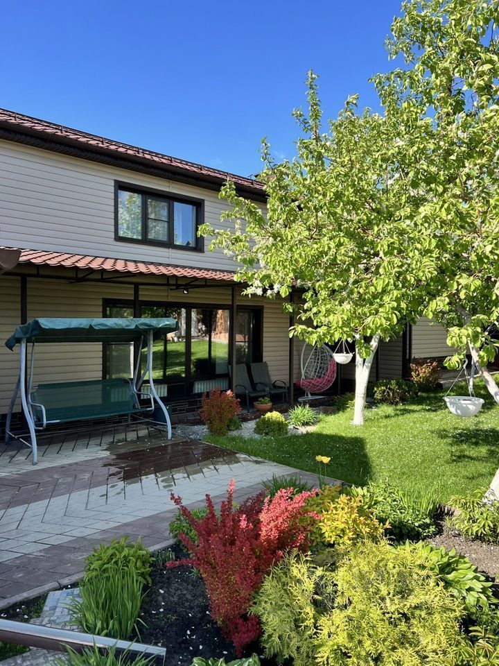 120 м кв 2 этажа, 1 этаж большая гостиная-кухня, прихожая, душ, туалет, готовое помещение под сауну, на втором этаже 3 просторные спальни, участок ухожен, газон, растения, много навесов, так же имеется гараж. Один взрослый собственник, возможен обмен на квартиру + доплата, рассмотрим варианты. Риэлторов просьба не беспокоить вообще.